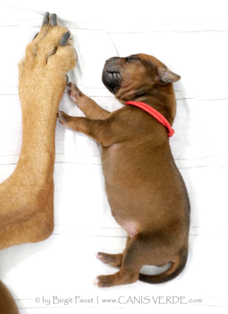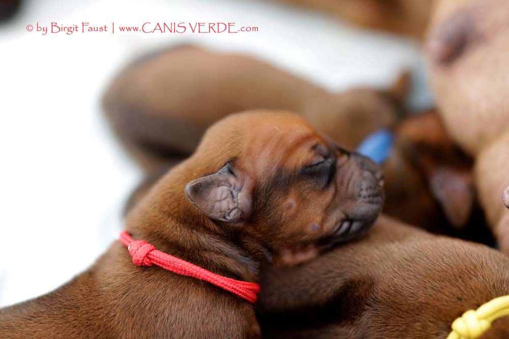 Unser Mädchen aus dem D-Wurf, das Fräulein rot, geboren am 08.05.2022: Canis Verde Deja Vu di Siena.