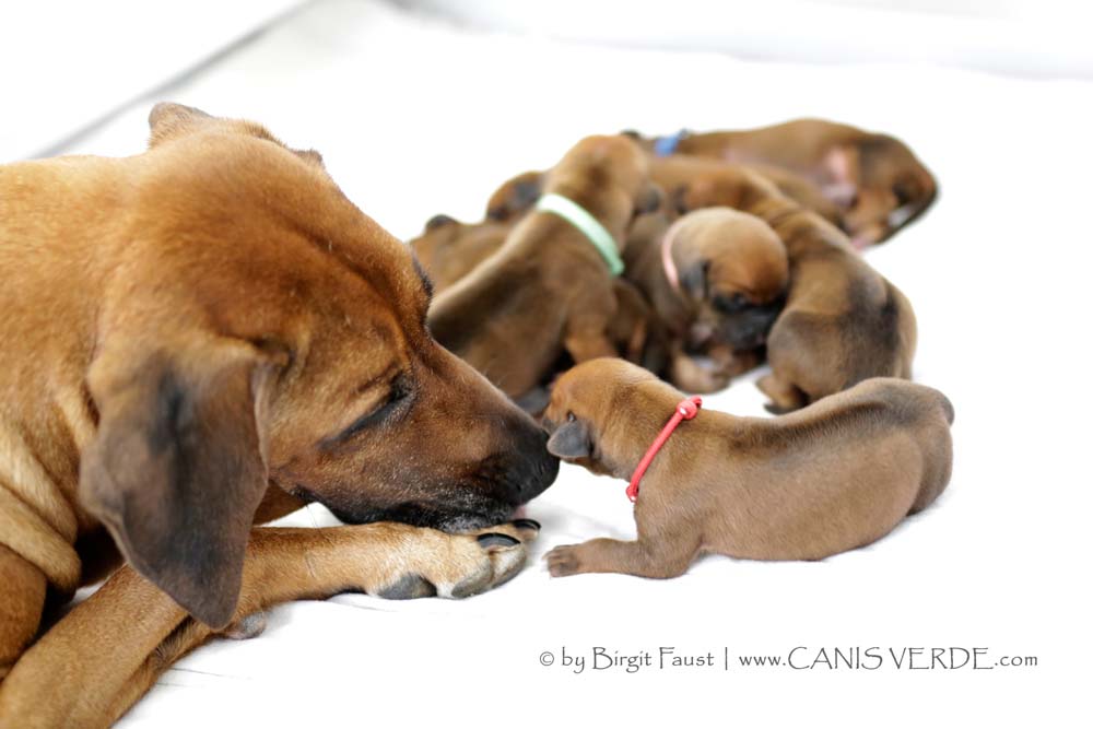 Ihr Vater ist der schöne Rüde von Jenny Bieker Wakati Mzuri Mabous Botha, ihre Mutter unsere geliebte Canis Verde Ayuma Yoyo.