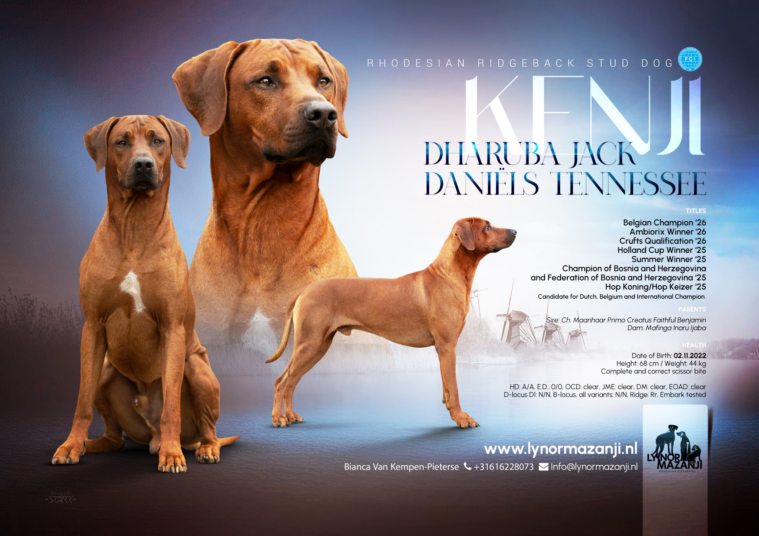 Kenji ist ein smarter, freundlicher Kerl voller Power und trotzdem mit aufgeschlossenem schönen Wesen und tollem Körperbau. Sowohl Siena als auch wir waren absolut schockverliebt ♡ Für mehr Details von ihm besucht die Homepage seiner tollen Familie: www.lynormazanji.nl